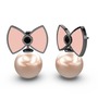 Pembe inci ve siyah zirkon 925 ayar siyah rodyum kaplama gümüş küpe (Pastel pembe mineli)