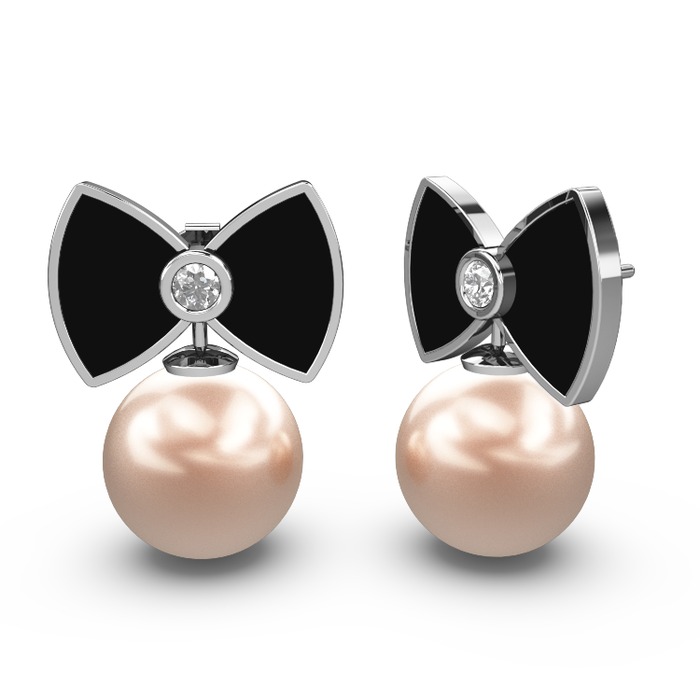 Pembe inci ve swarovski 8 ayar beyaz altın küpe (Siyah mineli)