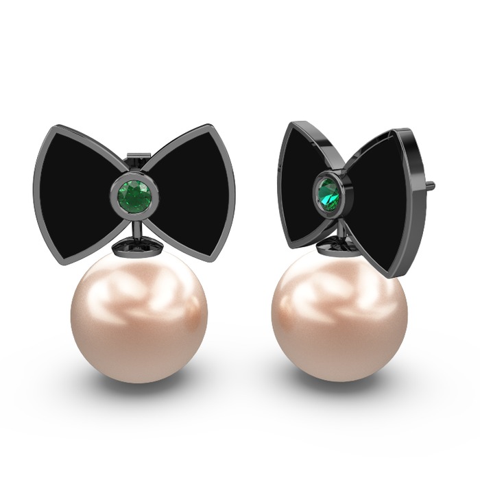 Pembe inci ve yeşil kuvars 925 ayar siyah rodyum kaplama gümüş küpe (Siyah mineli)