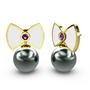 Siyah inci ve ametist 14 ayar altın küpe (Beyaz mineli)
