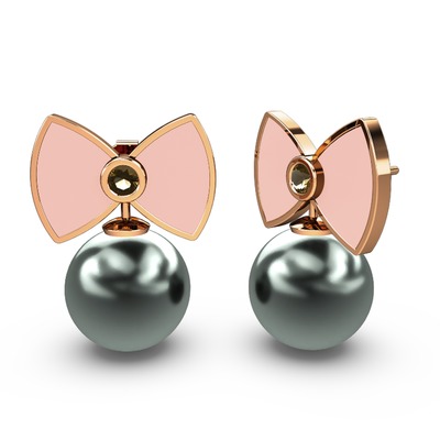 Siyah inci ve dumanlı kuvars 18 ayar rose altın küpe (Pastel pembe mineli)