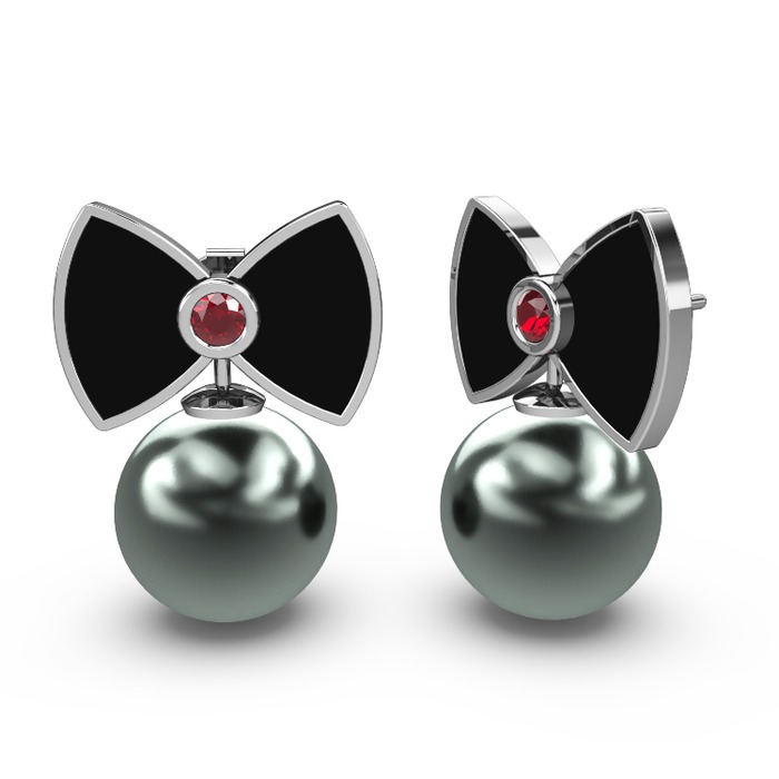 Siyah inci ve garnet 14 ayar beyaz altın küpe (Siyah mineli)