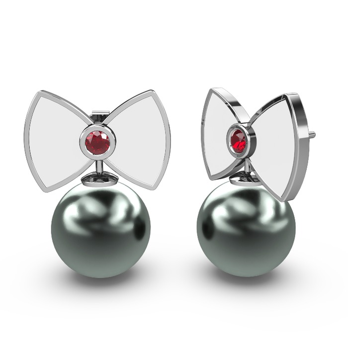 Siyah inci ve garnet 8 ayar beyaz altın küpe (Beyaz mineli)