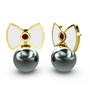 Siyah inci ve kök yakut 925 ayar altın kaplama gümüş küpe (Beyaz mineli)