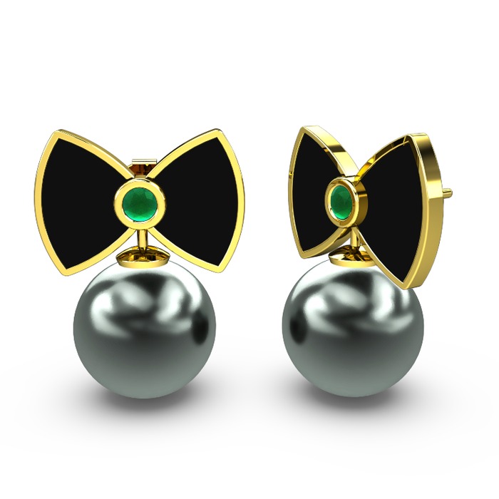 Siyah inci ve kök zümrüt 925 ayar altın kaplama gümüş küpe (Siyah mineli)