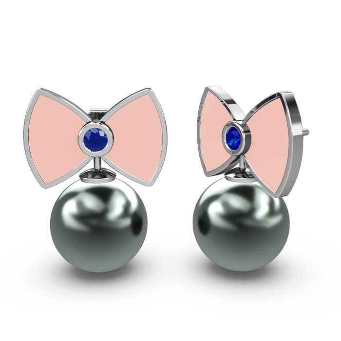 Siyah inci ve lab safir 8 ayar beyaz altın küpe (Pastel pembe mineli)
