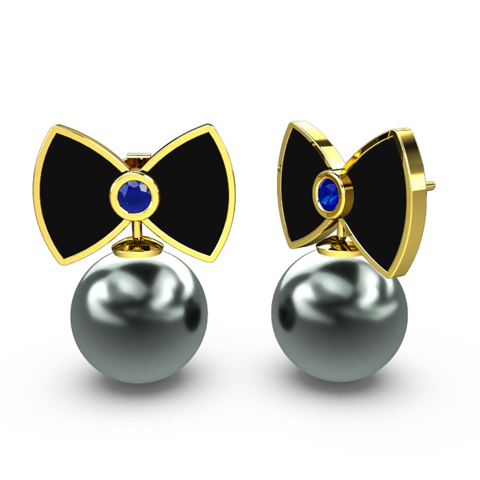 Siyah inci ve lab safir 925 ayar altın kaplama gümüş küpe (Siyah mineli)
