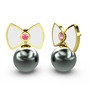 Siyah inci ve pembe kuvars 14 ayar altın küpe (Beyaz mineli)