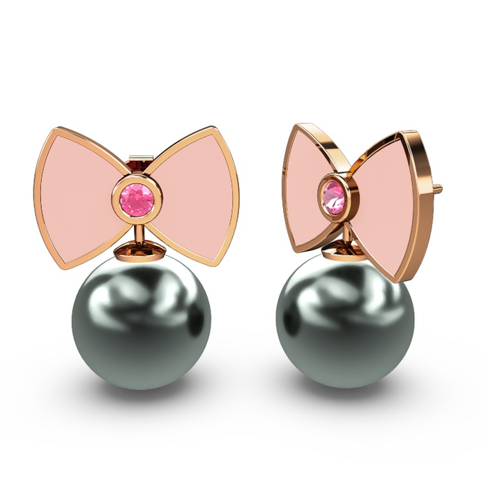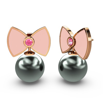 Siyah inci ve pembe kuvars 18 ayar rose altın küpe (Pastel pembe mineli)