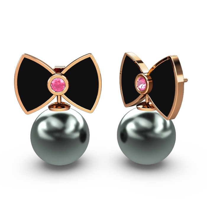 Siyah inci ve pembe kuvars 925 ayar rose altın kaplama gümüş küpe (Siyah mineli)