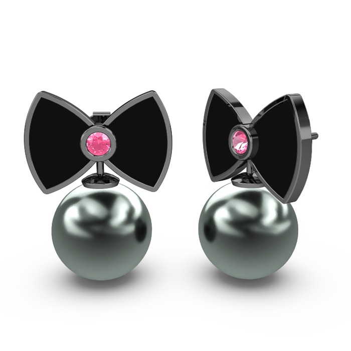 Siyah inci ve pembe kuvars 925 ayar siyah rodyum kaplama gümüş küpe (Siyah mineli)