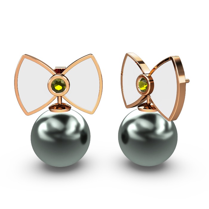 Siyah inci ve peridot 8 ayar rose altın küpe (Beyaz mineli)