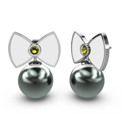 Siyah inci ve peridot 925 ayar gümüş küpe (Beyaz mineli)