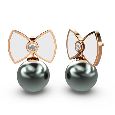 Siyah inci ve pırlanta 14 ayar rose altın küpe (0.12 karat, beyaz mineli)