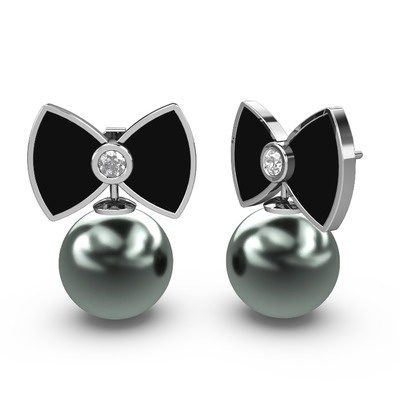 Siyah inci ve pırlanta 8 ayar beyaz altın küpe (0.12 karat, siyah mineli)