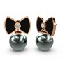 Siyah inci ve pırlanta 8 ayar rose altın küpe (0.12 karat, siyah mineli)