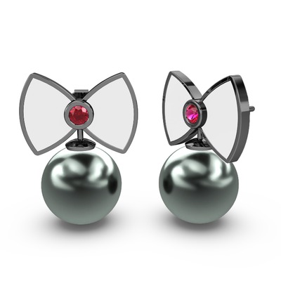 Siyah inci ve rodolit garnet 925 ayar siyah rodyum kaplama gümüş küpe (Beyaz mineli)