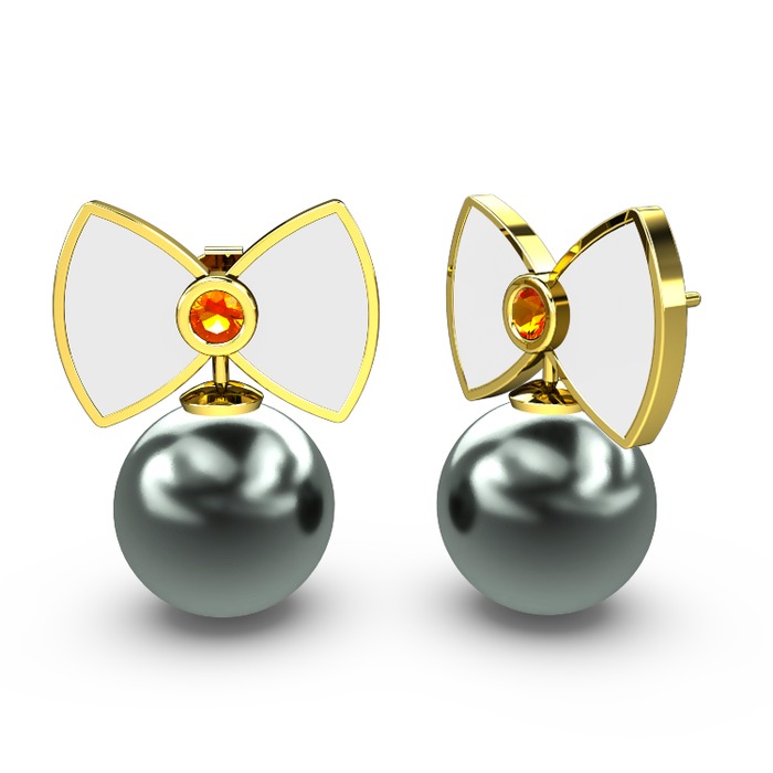 Siyah inci ve sitrin 14 ayar altın küpe (Beyaz mineli)