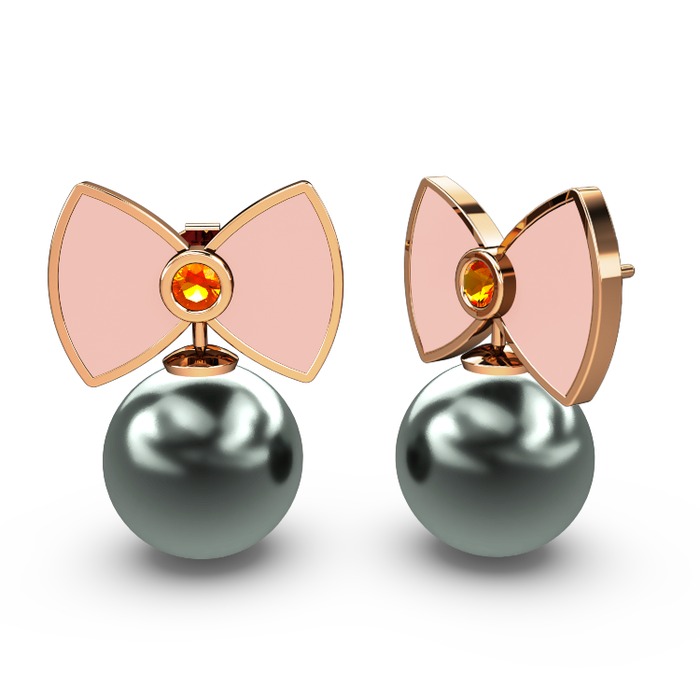 Siyah inci ve sitrin 8 ayar rose altın küpe (Pastel pembe mineli)