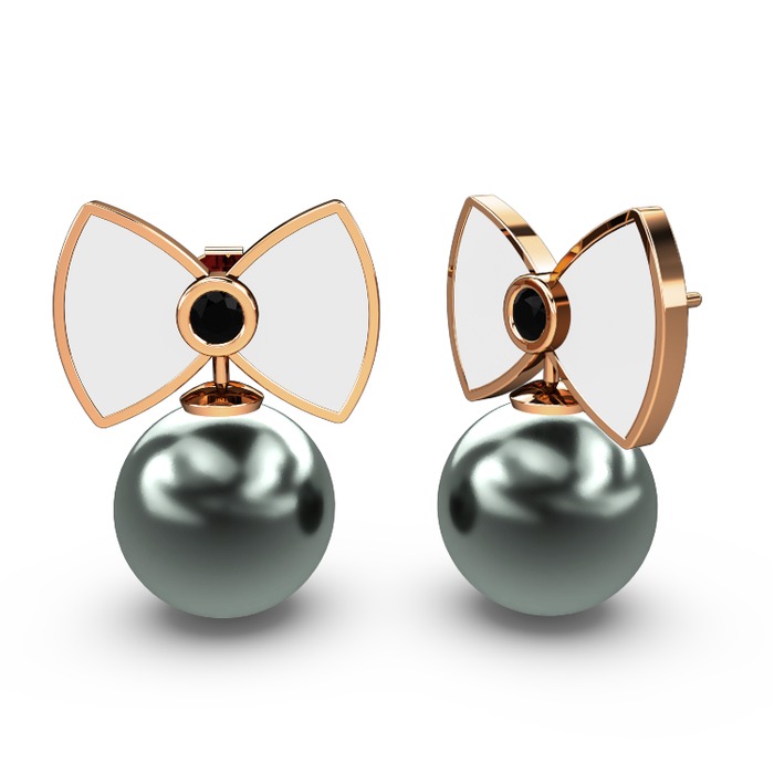 Siyah inci ve siyah zirkon 14 ayar rose altın küpe (Beyaz mineli)