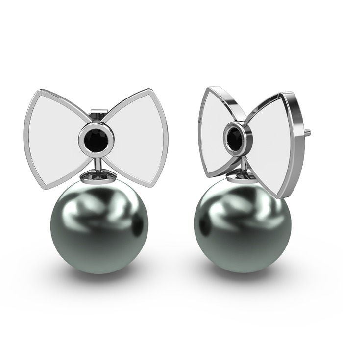 Siyah inci ve siyah zirkon 8 ayar beyaz altın küpe (Beyaz mineli)