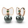 Siyah inci ve yeşil kuvars 8 ayar rose altın küpe (Beyaz mineli)