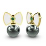 Siyah inci ve yeşil kuvars 925 ayar altın kaplama gümüş küpe (Beyaz mineli)