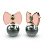 Siyah inci ve yeşil kuvars 925 ayar rose altın kaplama gümüş küpe (Pastel pembe mineli)