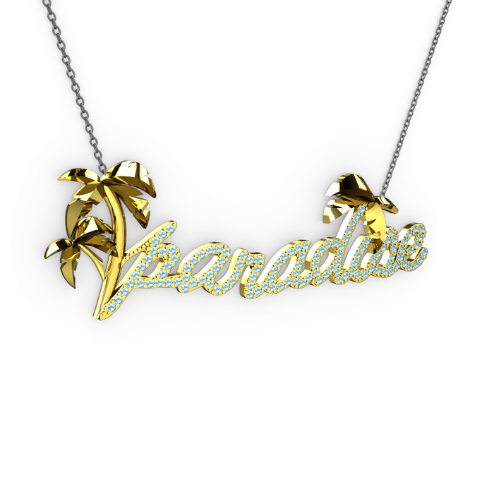 Akuamarin 18 ayar altın kolye (40 cm gümüş rolo zincir)