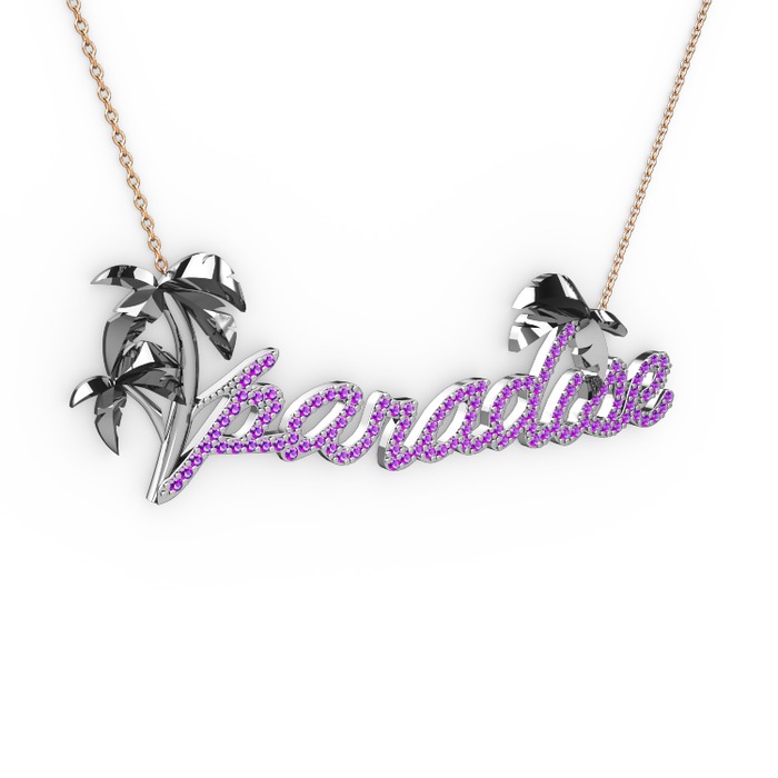 Ametist 8 ayar beyaz altın kolye (40 cm rose altın rolo zincir)