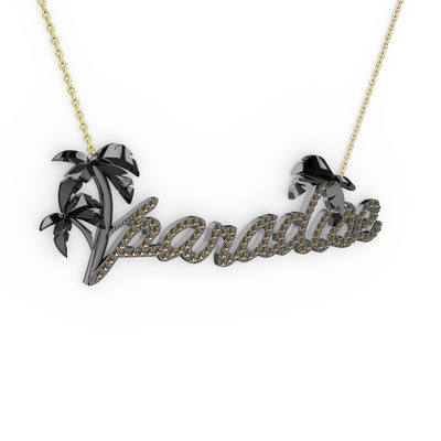 Dumanlı kuvars 925 ayar siyah rodyum kaplama gümüş kolye (40 cm altın rolo zincir)