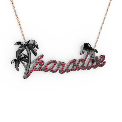 Garnet 925 ayar siyah rodyum kaplama gümüş kolye (40 cm gümüş rolo zincir)