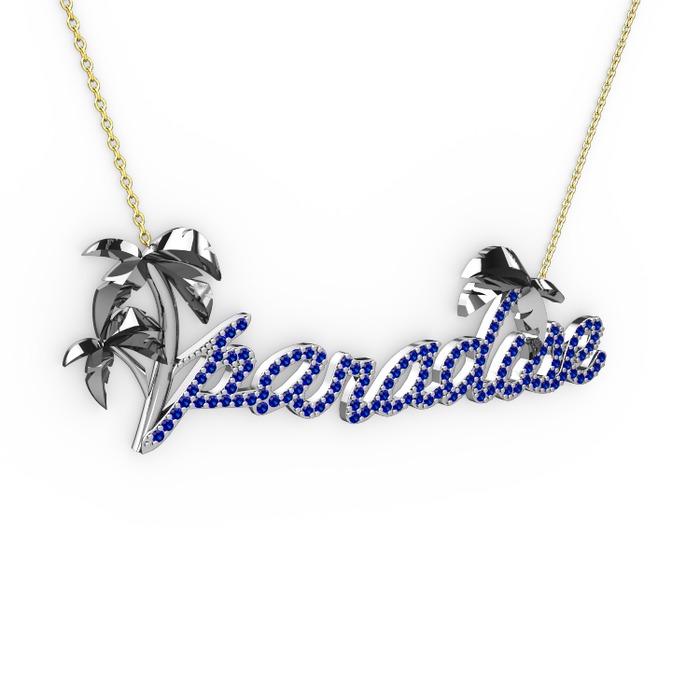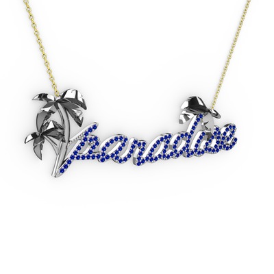 Lab safir 18 ayar beyaz altın kolye (40 cm altın rolo zincir)