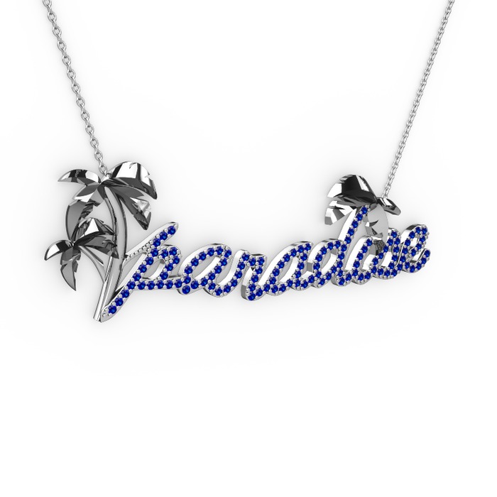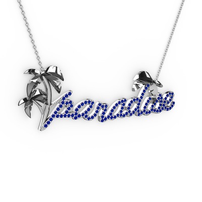Lab safir 8 ayar beyaz altın kolye (40 cm beyaz altın rolo zincir)