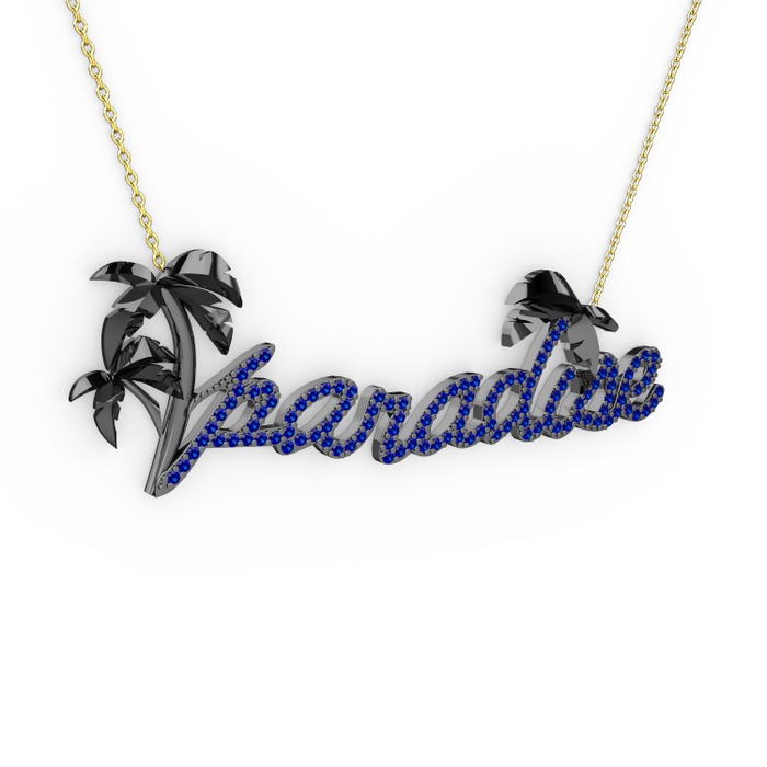 Paradise Kolye - Lab safir 925 ayar siyah rodyum kaplama gümüş kolye (40 cm altın rolo zincir)