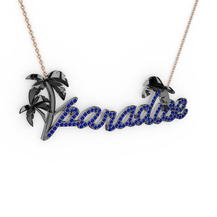 Lab safir 925 ayar siyah rodyum kaplama gümüş kolye (40 cm rose altın rolo zincir)