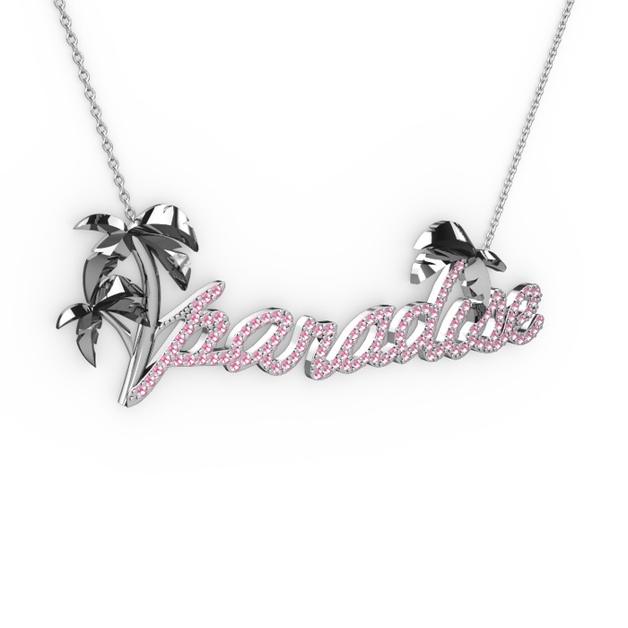 Pembe kuvars 925 ayar gümüş kolye (40 cm beyaz altın rolo zincir)