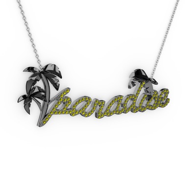 Peridot 925 ayar siyah rodyum kaplama gümüş kolye (40 cm beyaz altın rolo zincir)