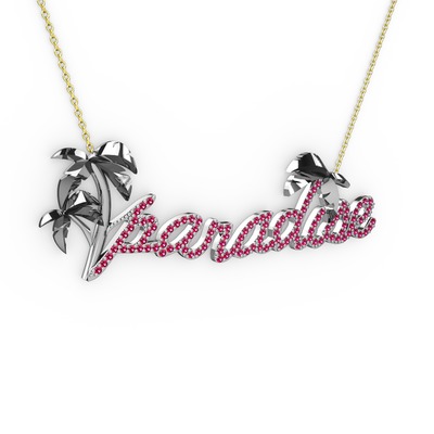 Rodolit garnet 8 ayar beyaz altın kolye (40 cm gümüş rolo zincir)