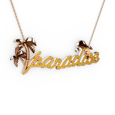 Paradise Kolye - Sitrin 8 ayar rose altın kolye (40 cm rose altın rolo zincir)