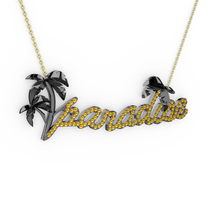 Sitrin 925 ayar siyah rodyum kaplama gümüş kolye (40 cm gümüş rolo zincir)