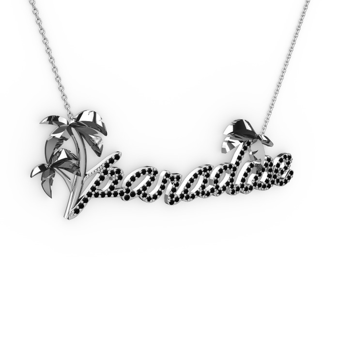 Siyah zirkon 14 ayar beyaz altın kolye (40 cm beyaz altın rolo zincir)