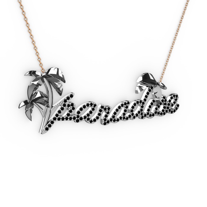 Siyah zirkon 18 ayar beyaz altın kolye (40 cm gümüş rolo zincir)