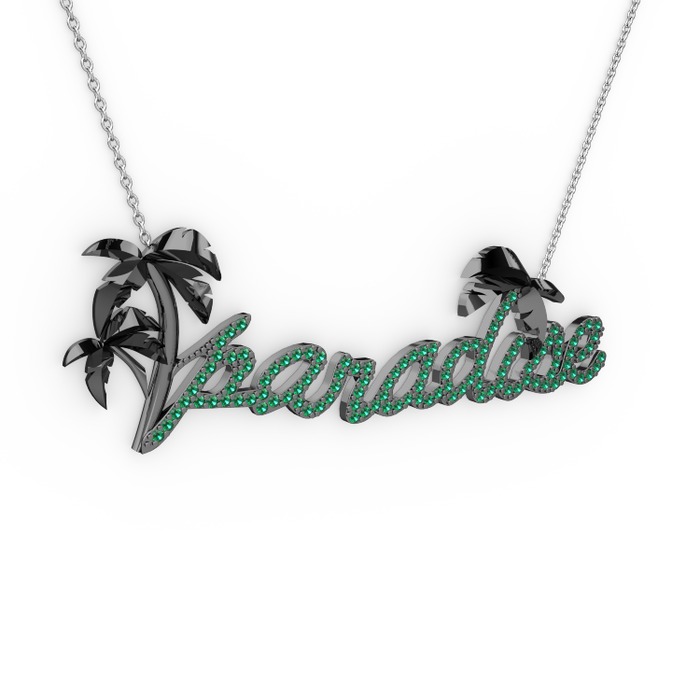 Yeşil kuvars 925 ayar siyah rodyum kaplama gümüş kolye (40 cm gümüş rolo zincir)