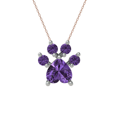Ametist 18 ayar beyaz altın kolye (40 cm rose altın rolo zincir)