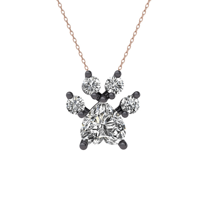 Beyaz zirkon 925 ayar siyah rodyum kaplama gümüş kolye (40 cm rose altın rolo zincir)