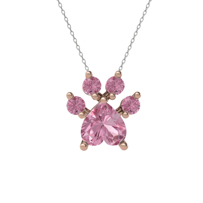 Pembe kuvars 18 ayar rose altın kolye (40 cm beyaz altın rolo zincir)