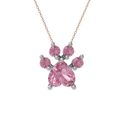 Pembe kuvars 8 ayar beyaz altın kolye (40 cm rose altın rolo zincir)