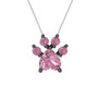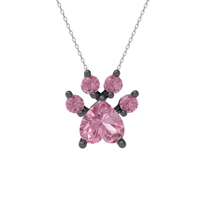 Pembe kuvars 925 ayar siyah rodyum kaplama gümüş kolye (40 cm beyaz altın rolo zincir)
