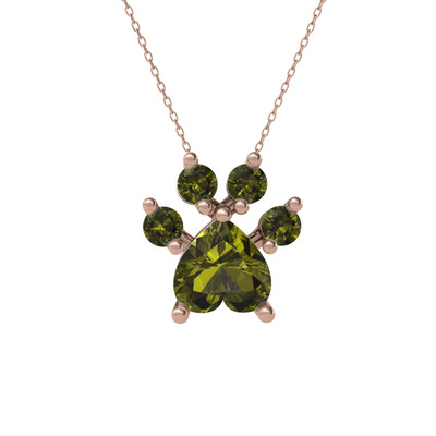 Peridot 925 ayar rose altın kaplama gümüş kolye (40 cm rose altın rolo zincir)